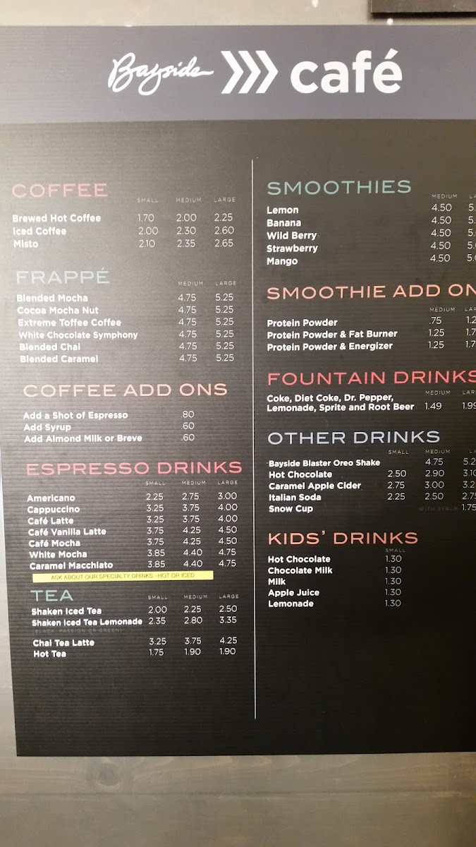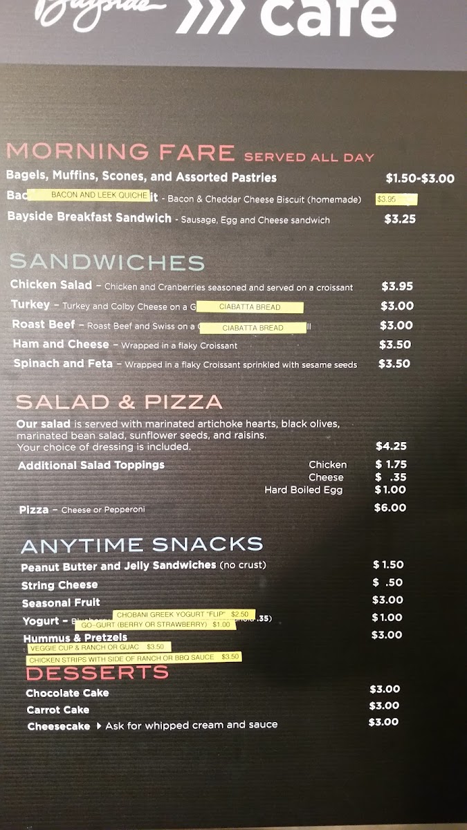 Bayside Café - Blue Oaks Campus Menu